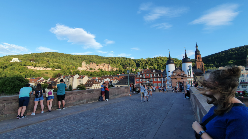 Vi gik en tur langs med floden og op til Alte Brücke, som er 200 meter lang. Aftenen var meget lun, men heldigvis luftede det.