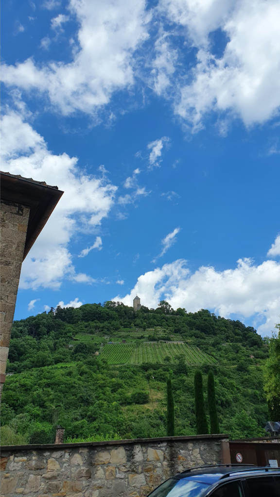 Her drejede vi ind til den fineste gårdbutik, hvor der gik høns ved parkeringspladsen og der var både æble og valnøddetræer. De solgte frugt, grønt, hjemmebagte kager, likør og selvfølgelig vin (Max Jäck). Likør ser vi i øvrigt også ret ofte, især frugtlikør, men det er endnu ikke et område vi er begyndt at udforske.