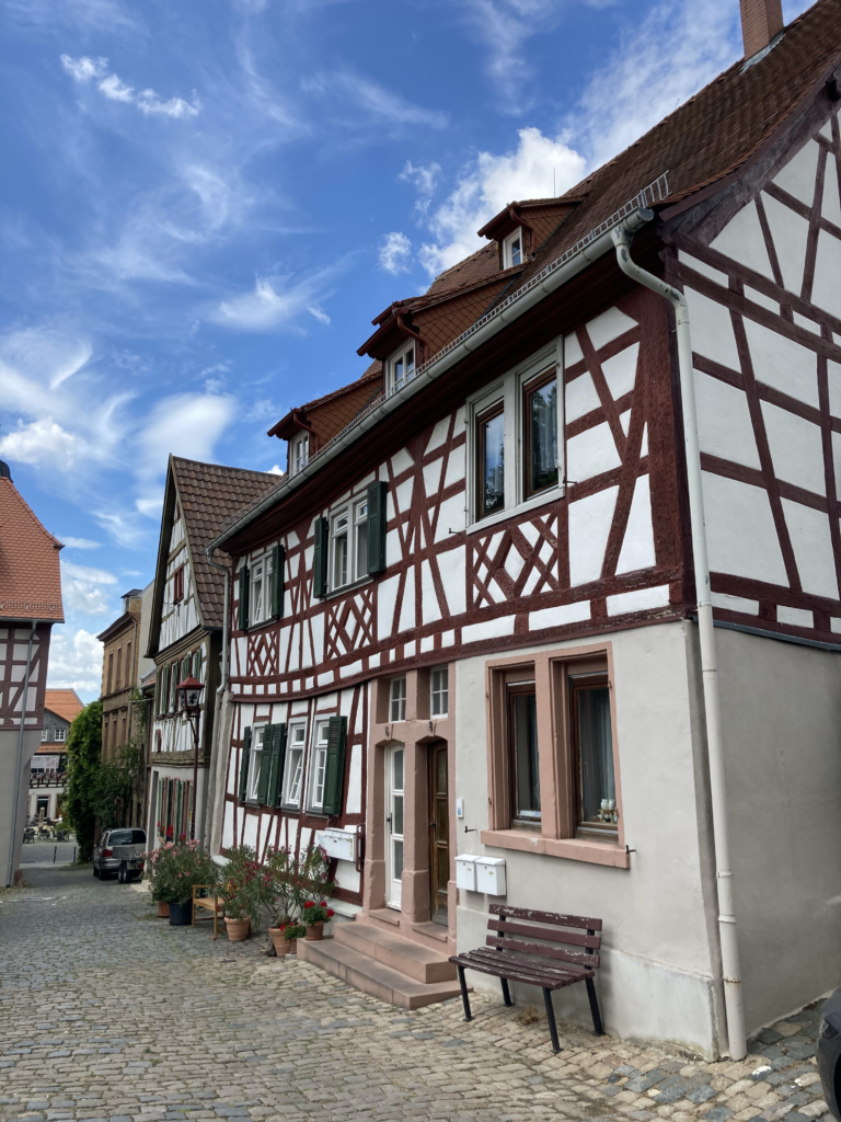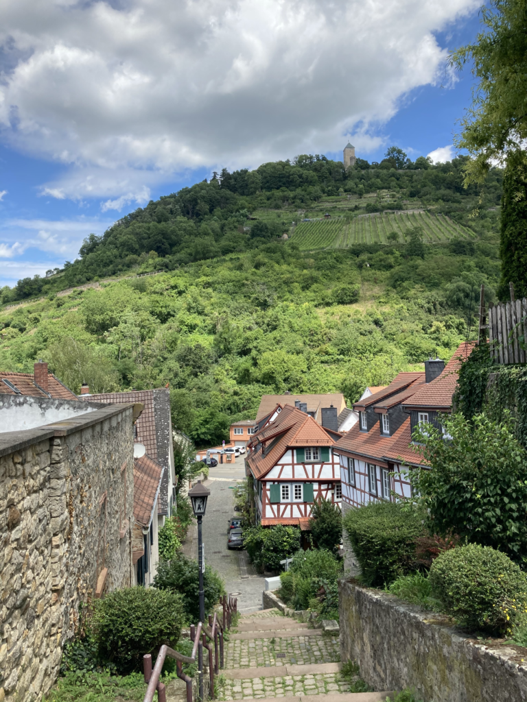 Vi fandt parkering i Heppenheim og gik på udkig efter frokost. Den gamle bydel var meget fin!