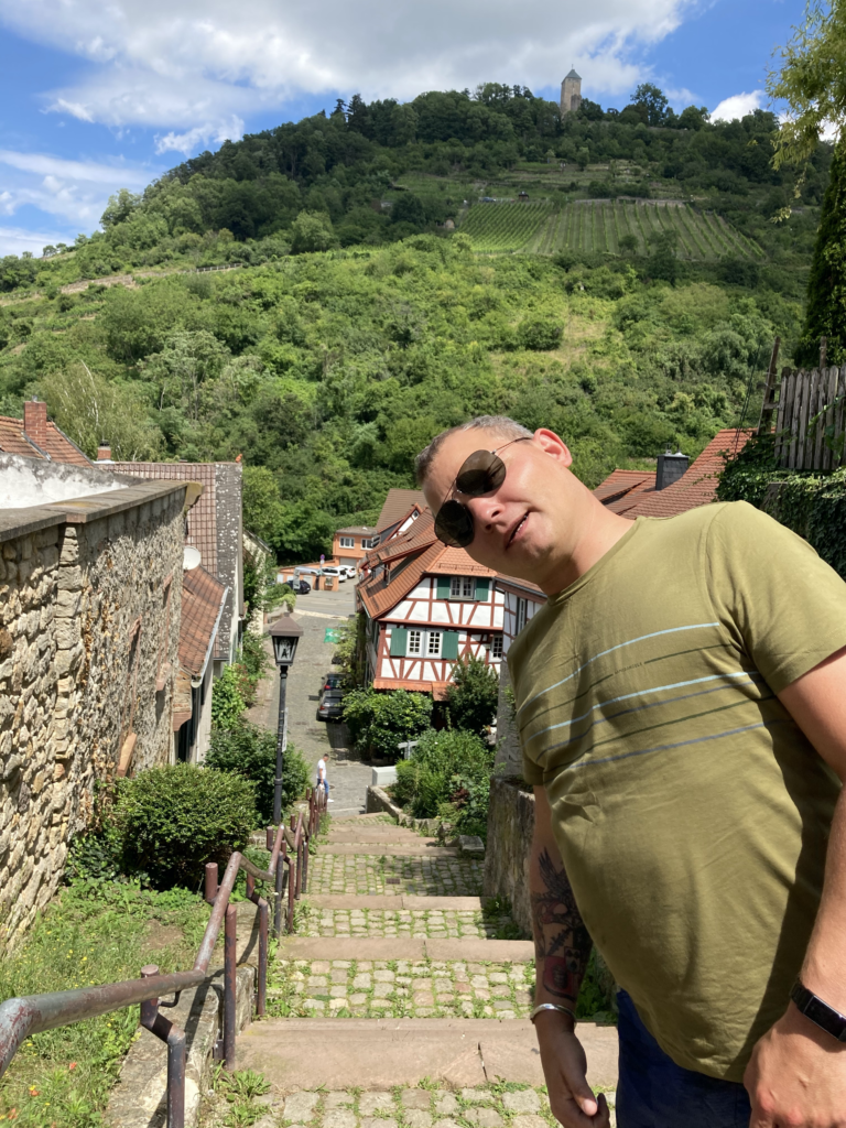 Vi kørte videre mod Heppenheim, men stoppede lige i et vinudsalg, hvorefter vi kunne lægge den femte kasse vin i bagagerummet sammen med en enkelt Eiswein.