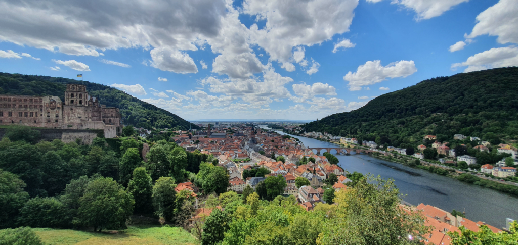 Vi fandt en parkeringsplads ikke så langt fra Sloss Heidelberg, som havde en imponerende have og udsigt.