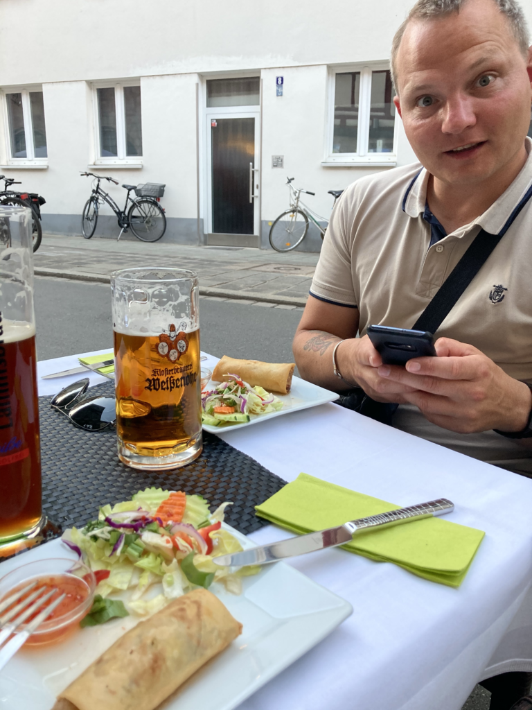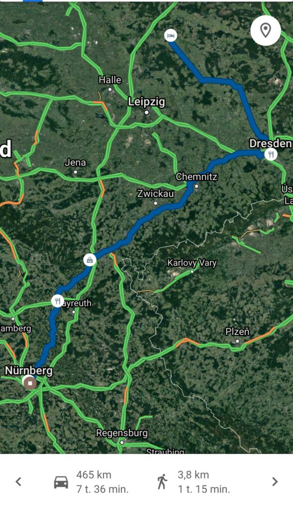 Landskabet på vej til Nürnberg var bakket og vi kan begynde at se at vi nærmer os noget Tyrolsk. Vi ankom til Nürnberg ca. kl. 19. Vi har booket en hotellejlighed. Dog væsentlig mindre end vi er vant til 🤥 Der er køleskab, elkoger, mikroovn og remedier til at vi kan spise morgenmad og lave en sandwich.