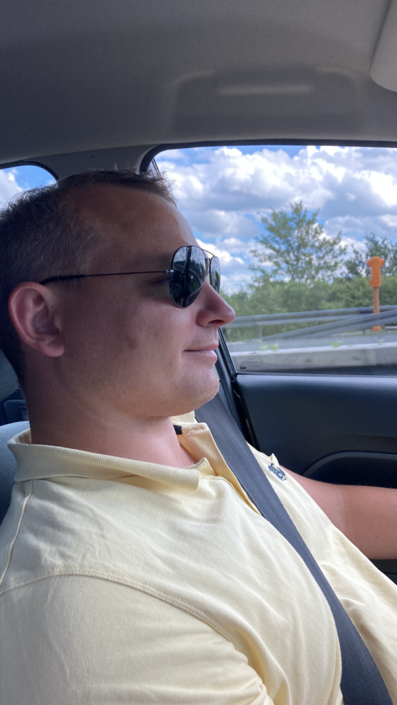 Vi kørte ud af byen igen kl. 14 og tankede på vejen. 2 timer på motorvej og resten landevej Turen gik med Sara Blædels ‘Kvinden der forsvandt’, Tina Dickow og Mew