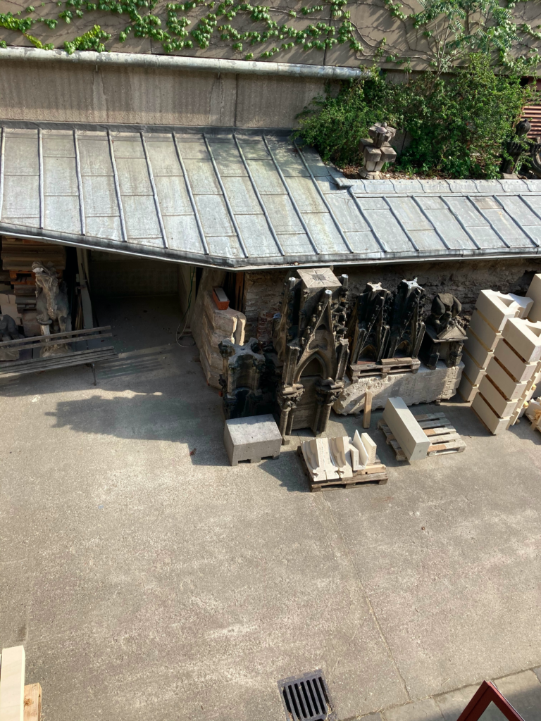 Vi pakkede vores tasker og – efterhånden mange forskellige – poser (skopose, madpose, toilettaskepose), så de var klar til lige at bære ned i bilen og gik tilbage til domkirken. Inden vi gik indenfor gik vi en tur rundt om. På den ene side af kirken, var der etableret et værksted, hvor kirken løbende kan renoveres. Det virker som et evighedsprojekt.