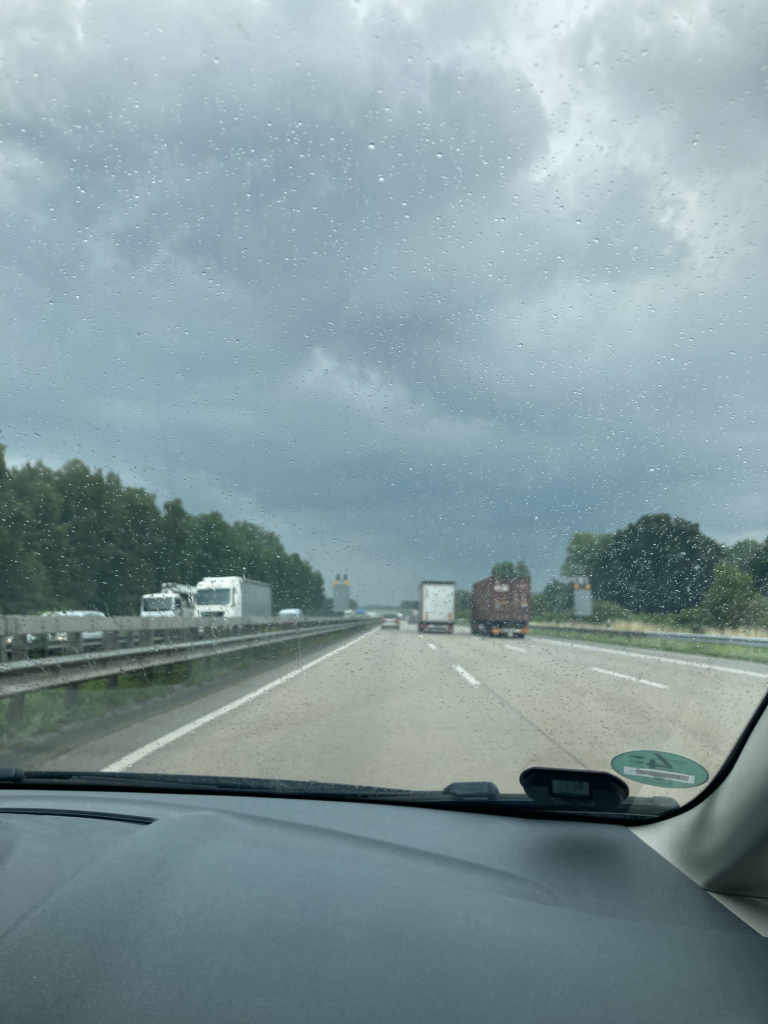 Det regnede hele eftermiddagen og aftenen, ja faktisk helt fra vi nåede 10 kilometer udenfor Köln.