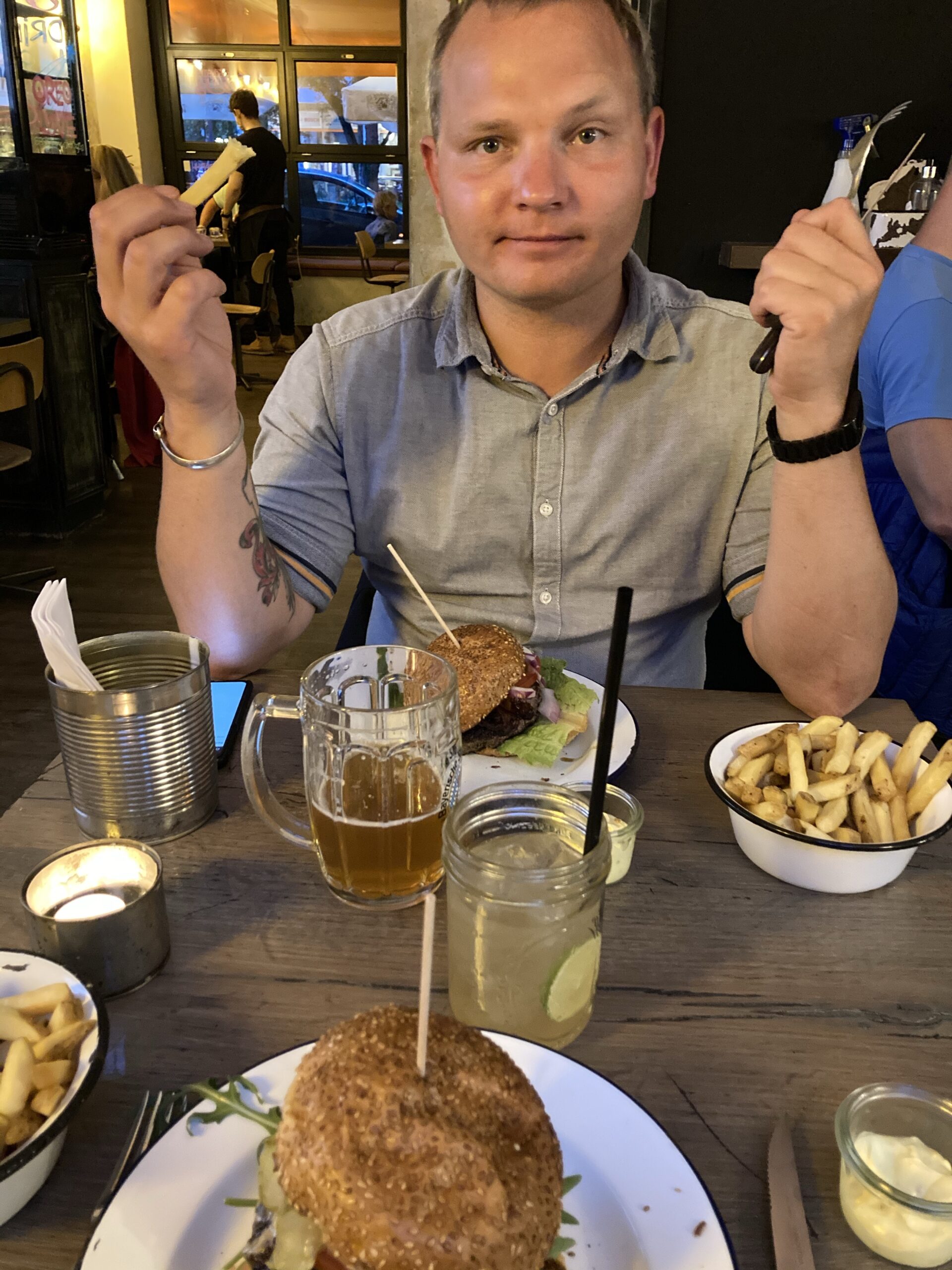 Vi gik over på den anden side af banegården, hvor kvarteret ændrede sig fuldstændig – faktisk præcis på samme måde som i København – for at finde noget aftensmad. Da vi nu var kommet til Hamburg, var det tid til en (ham)burger på Brooklyn Burger Bar. Den var god!